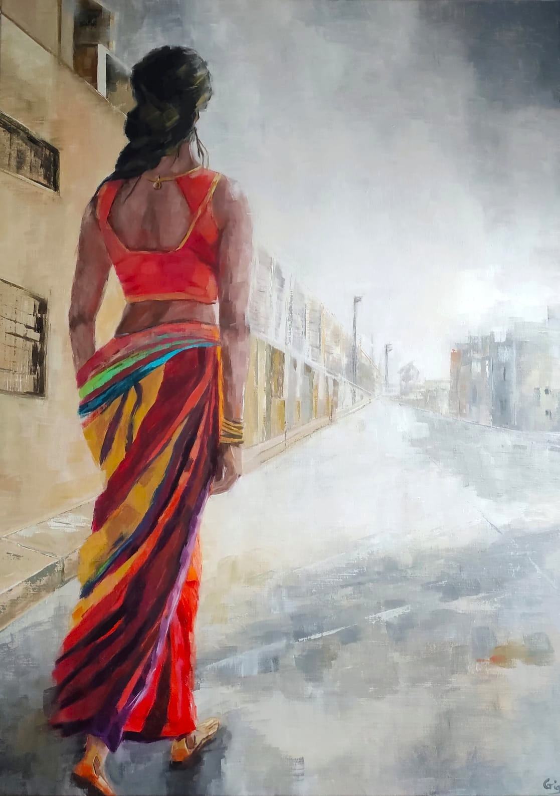 Huile sur toile 100x72" Arushi - Femmes de l'Inde"